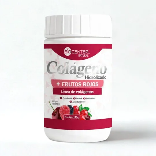 El Colágeno + Frutos Rojos – Biocenter Natural es una mezcla en polvo para bebida instantánea elaborada con colágeno hidrolizado y una potente combinación de cereza, frambuesa, zarzamora y arándano rojo. Su fórmula ha sido desarrollada para favorecer la circulación, la salud cardiovascular y el sistema inmunológico, aportando proteínas y antioxidantes naturales al organismo.